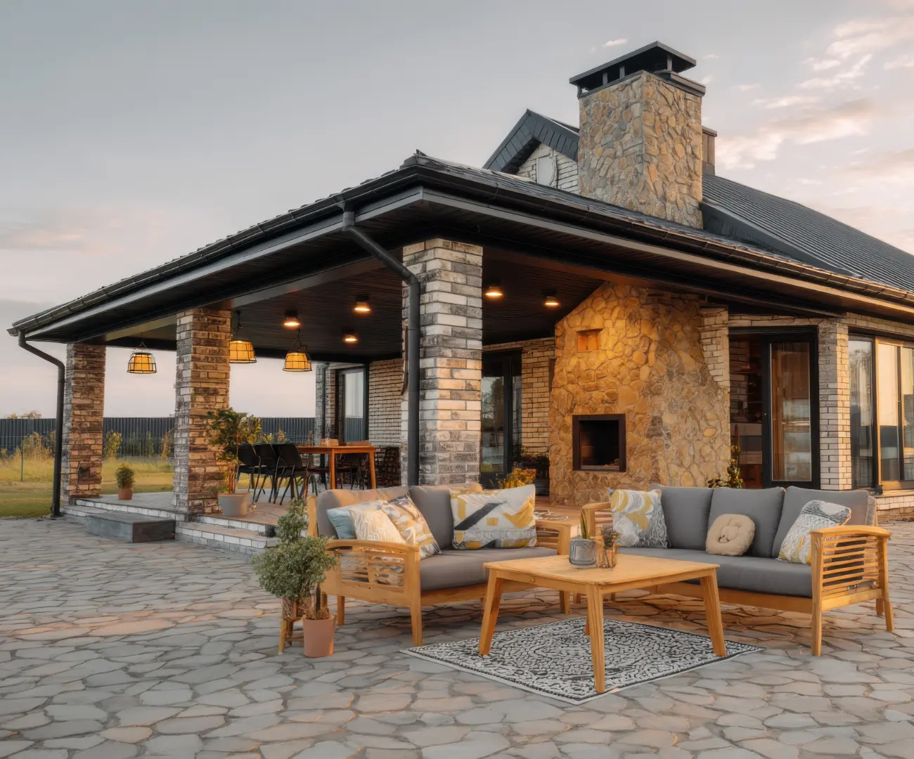 Roof overhangs and covered entryways create ready-made opportunities for protected outdoor living. These areas need minimal construction while providing shade and weather protection for furniture, dining sets, or relaxation zones.